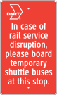 Six separate DART shuttle bus routes will operate during the weekend closures to serve the affected downtown stations. Buses will load and unload at the red "Rail Disruption" bus stop located near each station. Signs on the rail platform will point customers to these bus stops.
